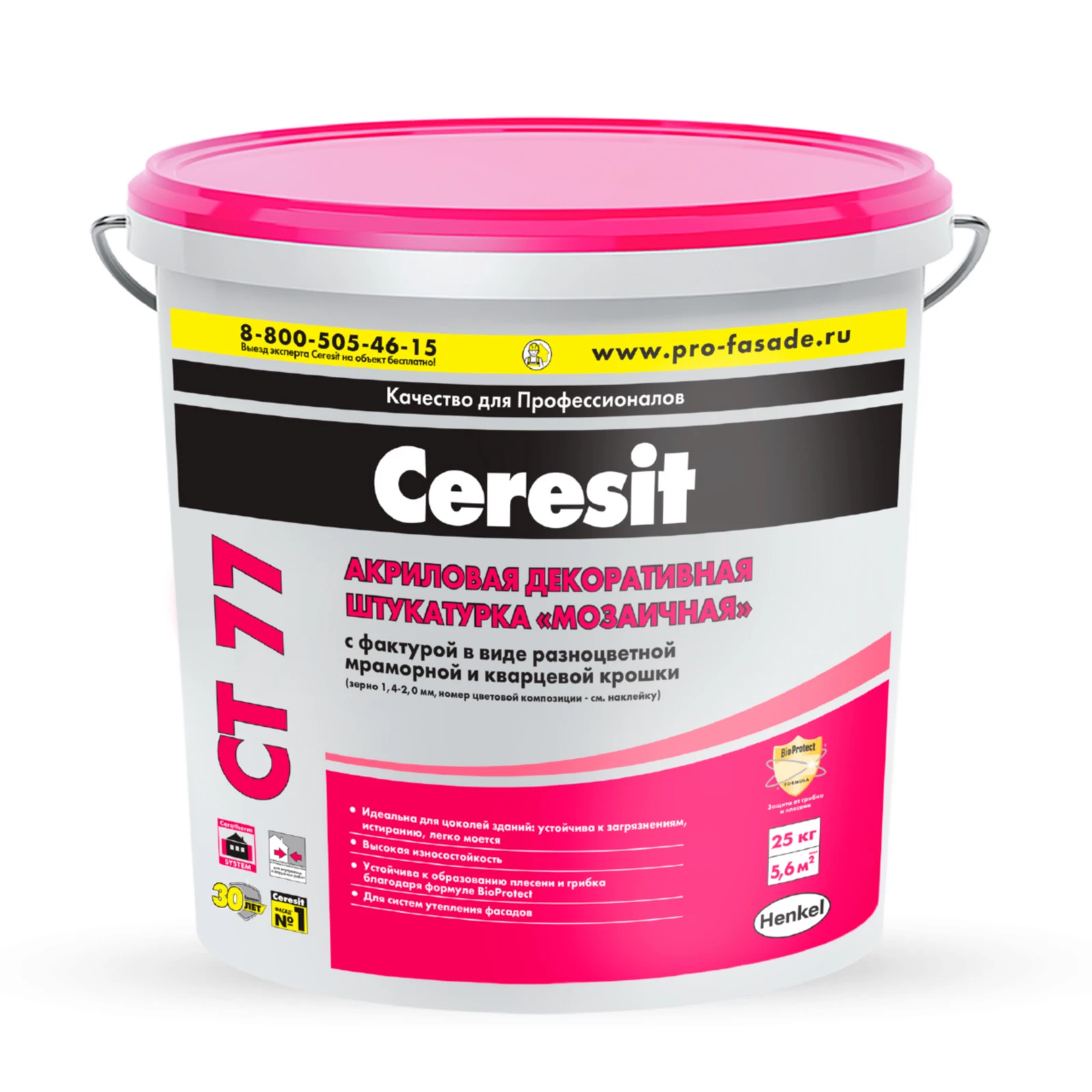 Декоративная штукатурка CT 77 предназначена для изготовления тонкослойных декоративных покрытий с «мозаичной» фактурой на бетоне, цементных и гипсовых штукатурках, гипсокартоне, древесностружечных плитах и т.д. внутри и снаружи зданий.