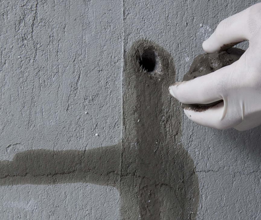 используют в сухом виде. Для этого дефект заполняют сухой смесью и удерживают ее там до схватывания (примерно