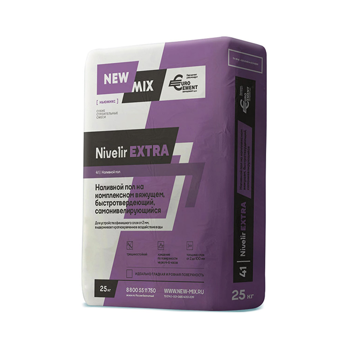 Отмерить 6,75 – 8 литра воды и вылить ее емкость для смешивания. При постоянном перемешивании, при помощи соответствующего инструмента (миксер для растворов, низкооборотистая дрель), засыпать весь материал в емкость. Перемешать в течении 2-3 минут, дать отстояться в течении 2- 3 минут и снова перемешать в течении 1 мин.