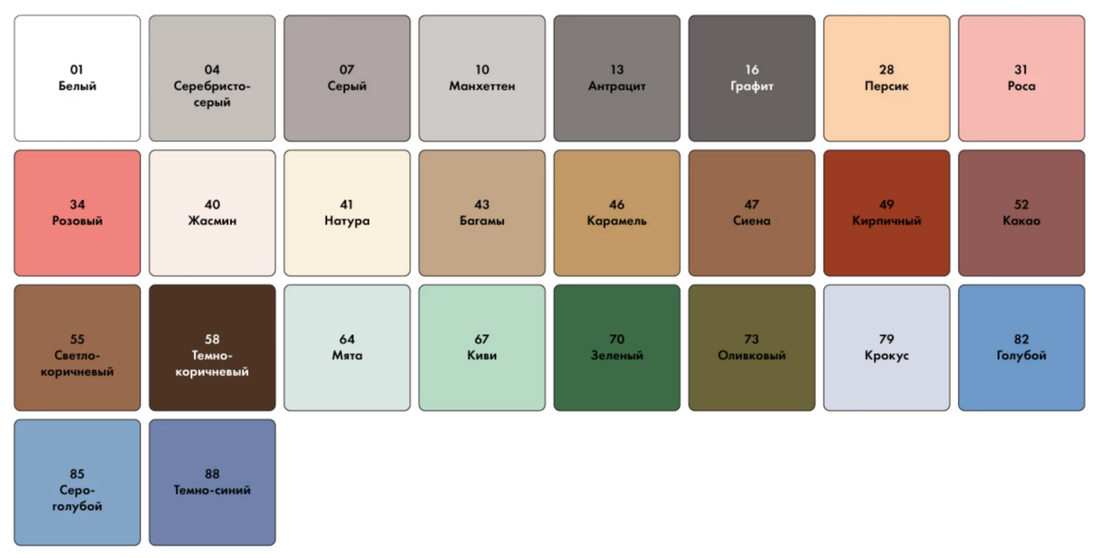 выпускается в 26 цветах, включая белый;